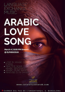Catalan in Arabic is organizing a cultural event entitled Love in Arab Songs and Poetry, next Friday at 20:00