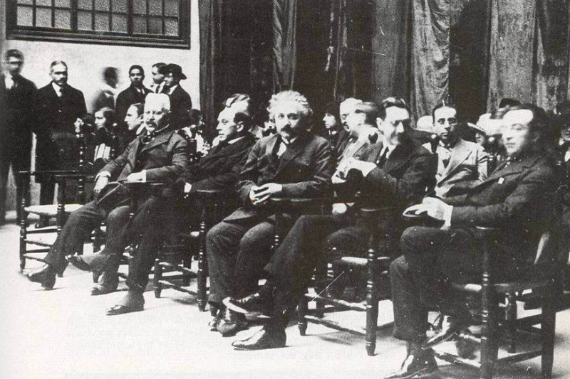 وكان استيف تيراديس، العالم الكتالوني، هو الرجل الذي دعا الألماني الحائز على جائزة نوبل في الفيزياء عام 1921 بعد اجتماعه معه في برلين، حيث سافر أينشتاين من مدينة تولون الفرنسية، ووصل إلى محطة قطار استاسيو دي فرانسيا في برشلونة في 22 فبراير 1923، لم يكن أحد في انتظاره. وكان أينشتاين قد أرسل برقية من سنغافورة يعلن أنه سيصل لكنه نسي تحديد التاريخ والوقت.
