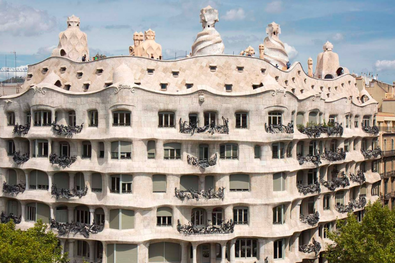 يُعرف Casa Milà أيضًا باسم La Pedrera – ويعني “المحجر” – نظرًا لمظهره الرملي ذو اللون الحجري. لا يوجد جدار واحد في هذا المبنى مستقيم تمامًا، فجدرانه متعرجة بدلاً من ذلك، مع سطح خارجي متموج للغاية. تمتلئ الواجهة بتفاصيل صغيرة مثل الكثير من أعمال Gaudí، ولا يزال بعض السكان يعيشون في شقق من المبنى.