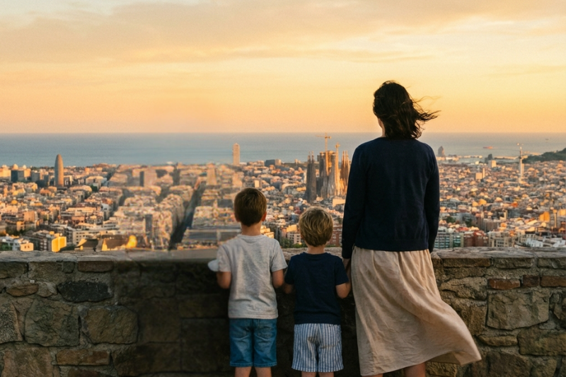 أفضل توقيت للصور العائلية: ساعة الغروب فوق برشلونة